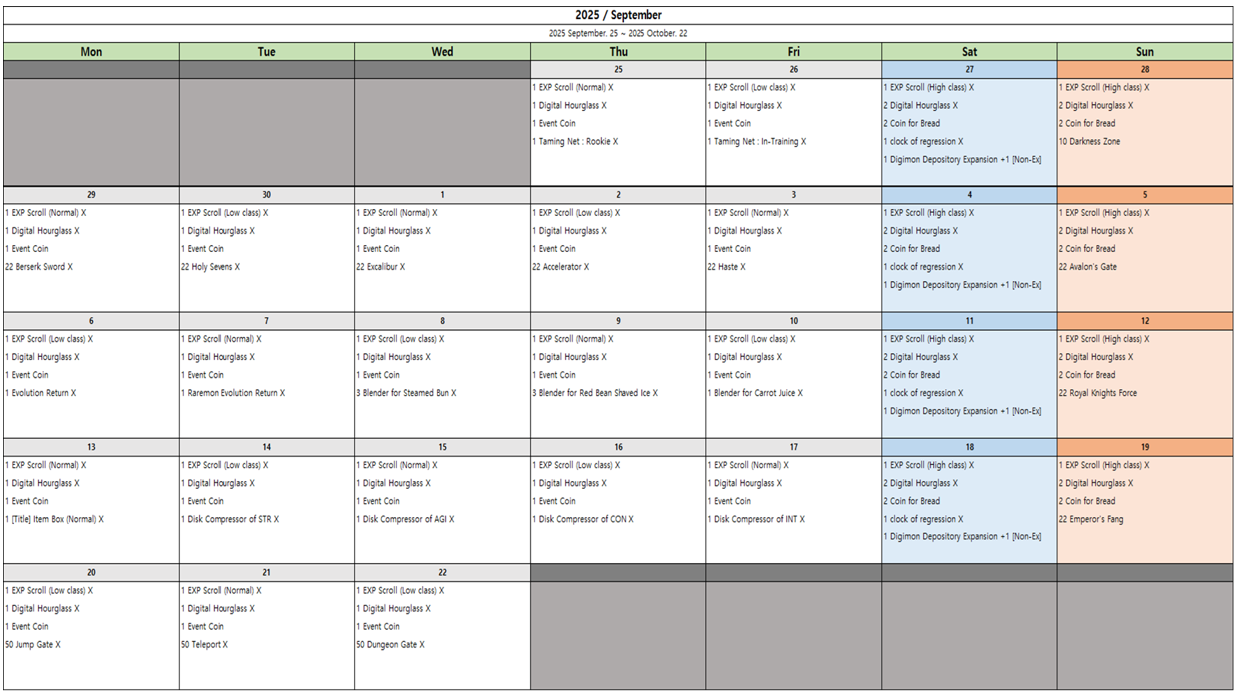 Event Period: 25th September 2025(Thu) after update ~ 2nd October 2025(Thu) before maintenance